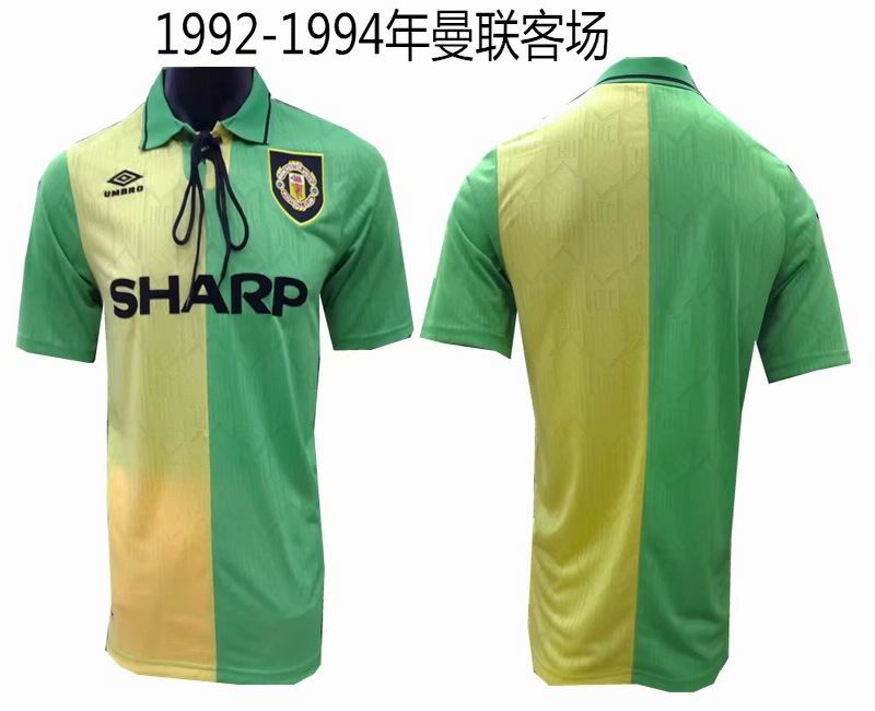 1992-1994 Manchester United thailand version throwback green yellow soccer jersey away