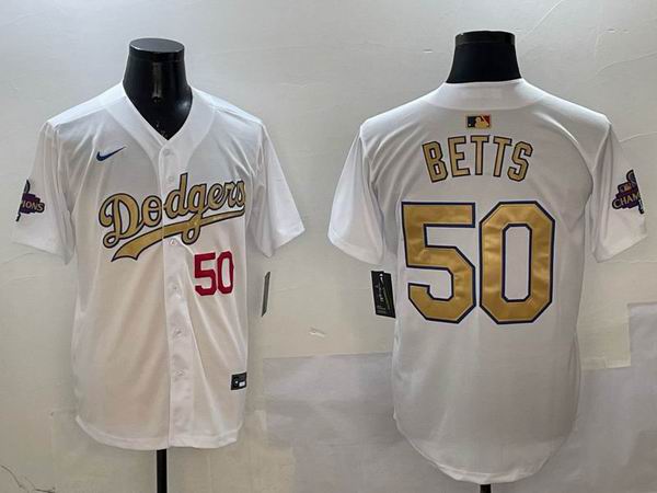 2025 Nike Los Angeles Dodgers 50 Mookie Betts white gold fashion majestic baseball jerseys 01