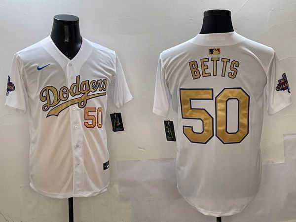 2025 Nike Los Angeles Dodgers 50 Mookie Betts white gold fashion majestic baseball jerseys