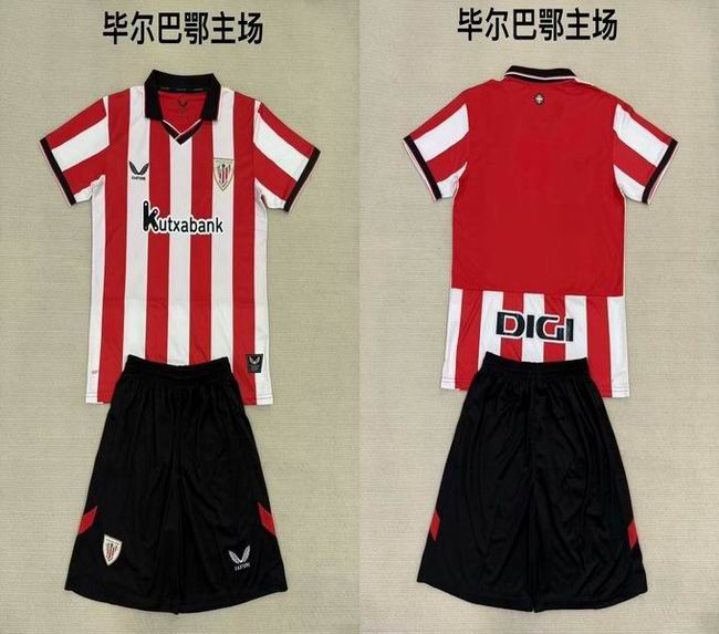 2025-2026 Athletic Bilbao club red white kid black soccer jerseys home