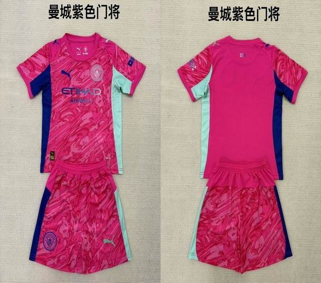 2025-2026 Manchester City club red purple kid goalkeeper soccer jerseys