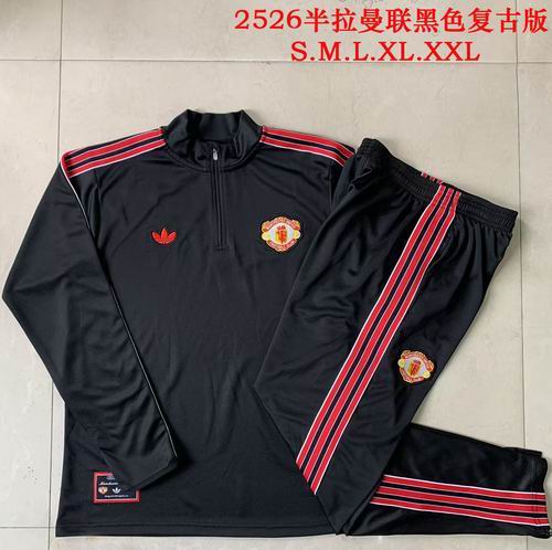2025-2026 Manchester United club black throwback soccer uniforms with Long Trousers B2506