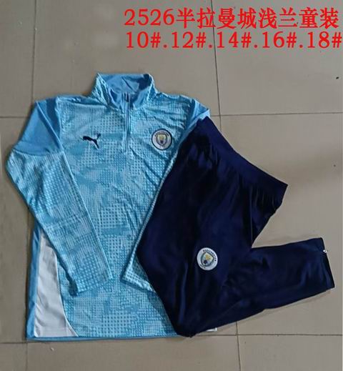 2025-2526 Manchester City skyblue blue kid Soccer uniforms with Long Trousers E25206
