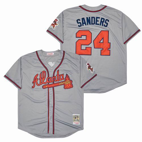 Atlanta Braves #24 Deion Sanders gray throwback baseball Jerseys