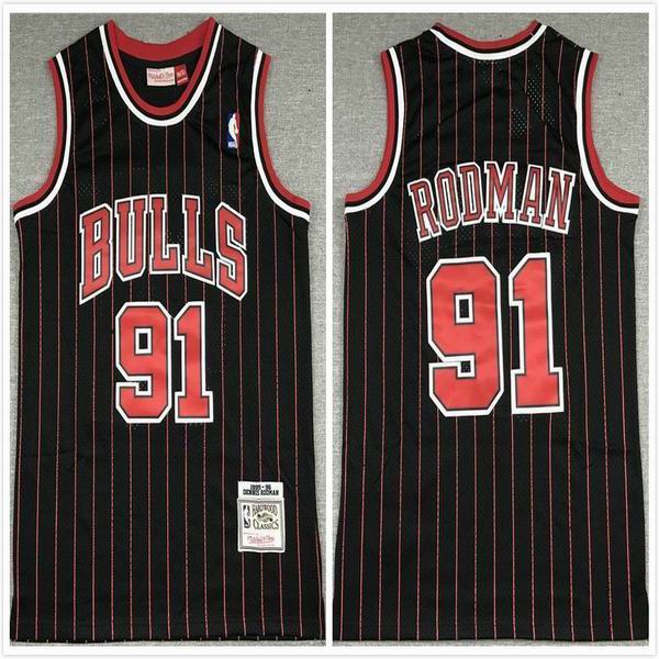 Chicago Bulls #91 Dennis Rodman black throwback red stripe NBA basketball Jersey-XD