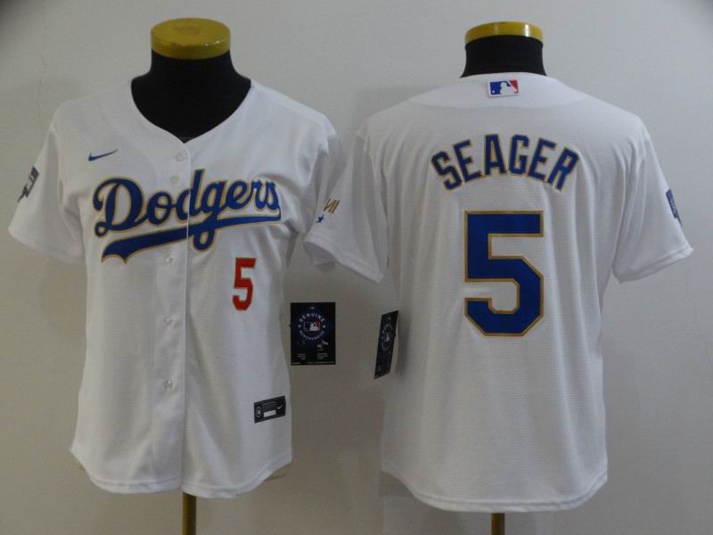 Custom Youth Dodgers #5 Corey Seager Nike white Dodger World Series Champions Flexbase Authentic Collection Jersey