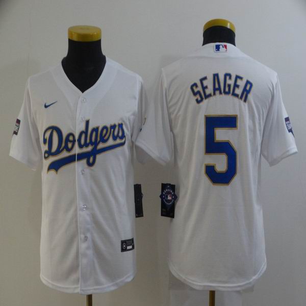 Custom Youth Dodgers #5 Corey Seager Nike white Dodger World Series Champions Flexbase Authentic Collection Jersey-BD
