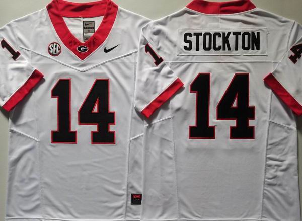Georgia Bulldogs Black #14 Gunner Stockton white college football jerseys