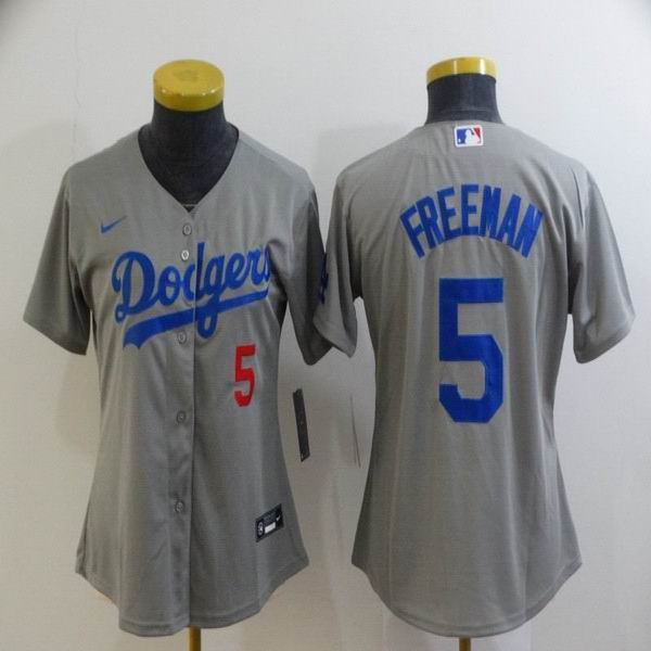 Los Angeles Dodgers #5 Freddie Freeman gray women majestic baseball jersey