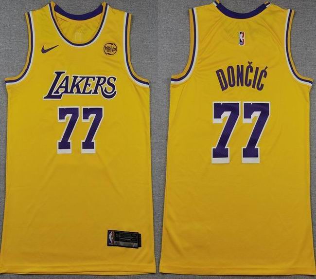 Nike Adult Los Angeles Lakers Luka Doncic #77 Yellow NBA Basketball jerseys 01