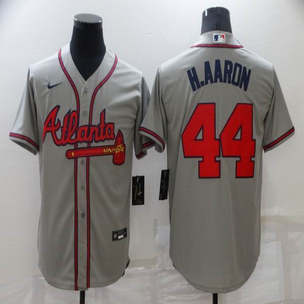 Nike Atlanta Braves #44 Hank Aaron gray majestic Mlb baseball Jersey-BD