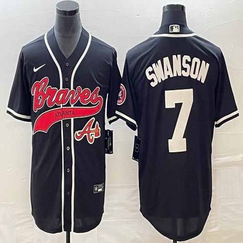Nike Atlanta Braves #7 Dansby Swanson black MLB Baseball jerseys Joint name-BD 02