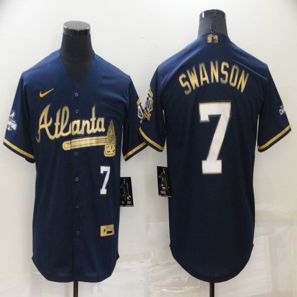 Nike Atlanta Braves #7 Dansby Swanson blue gold majestic baseball jersey