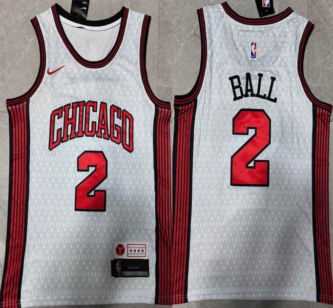 Nike Chicago Bulls #2 Lonzo Ball white red nba basketball jersey-XD