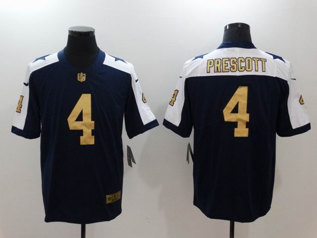 Nike Dallas Cowboys #4 Dak Prescott blue white Color Rush Limited Jersey Gold lettering
