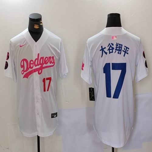 Nike Los Angeles Dodgers #17 Shohei Ohtani white pink majestic baseball jerseys Joint Name 04