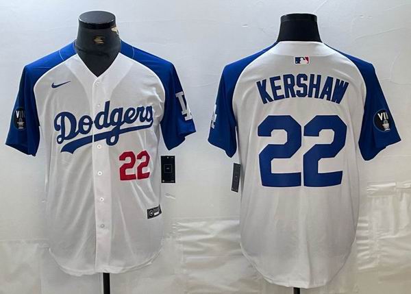 Nike Los Angeles Dodgers #22 Clayton Kershaw white blue fashion majestic baseball Jersey
