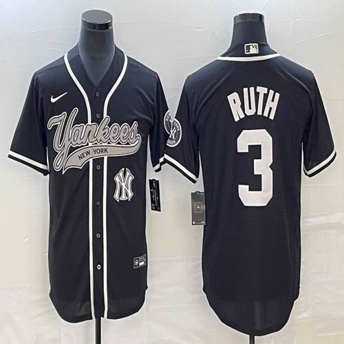 Nike New York Yankees #3 Babe Ruth black majestic baseball Jersey Joint name 02
