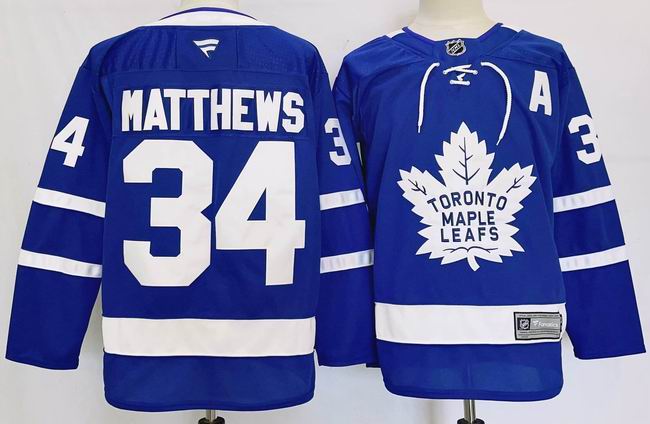 Toronto Maple Leafs #34 Auston Matthews blue hockey jersey with A patch-PD