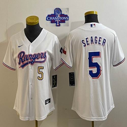 Women 2023 Champions Nike Texas Rangers #5 Seager white majestic baseball jerseys 01