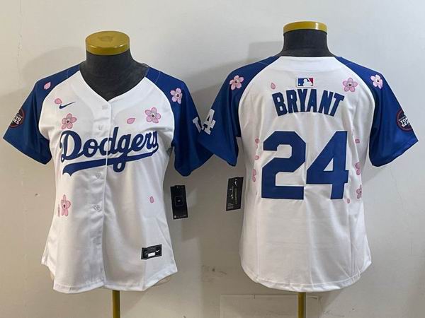 Women 2025 Nike Los Angeles Dodgers #24 Kobe Bryant white blue fashion majestic baseball jerseys Sakura plate