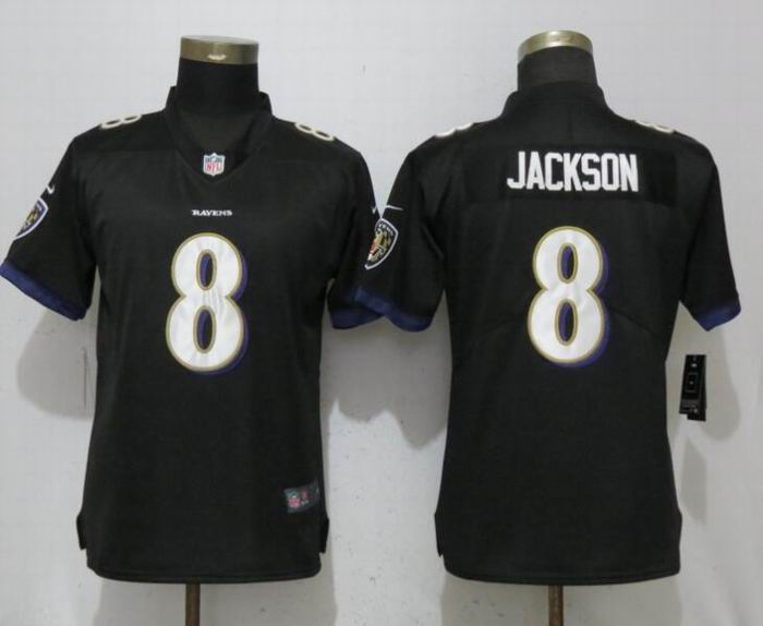 Women Baltimore Ravens #8 Lamar Jackson black Color Rush Limited Jersey