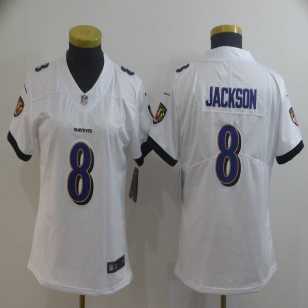 Women Baltimore Ravens #8 Lamar Jackson white Color Rush Limited Jersey
