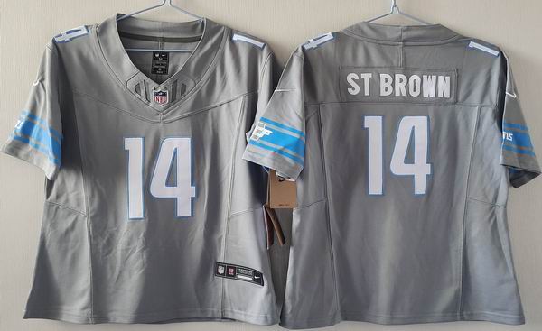 Women Detroit Lions #14 Amon Ra St Brown gray Nike Vapor F.U.S.E. Limited Jersey