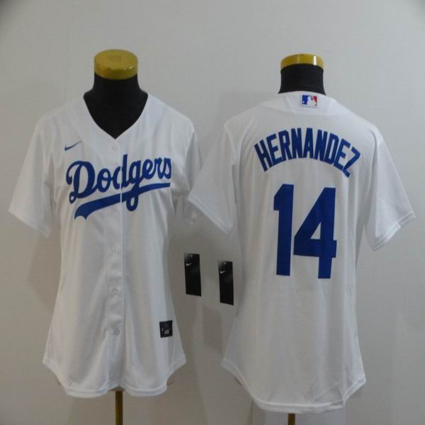 Women Los Angeles Dodgers #14 Enrique Hernandez white majestic baseball jersey