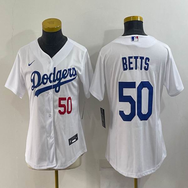 Women Los Angeles Dodgers #50 Mookie Betts white majestic baseball Jerseys
