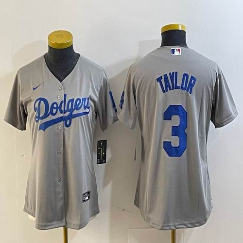 Women Los Angeles Dodgers Chris Taylor gray majestic baseball jersey 01