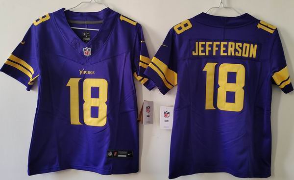 Women Minnesota Vikings #18 Justin Jefferson Nike purple Alternate Vapor F.U.S.E. Limited Jersey 01