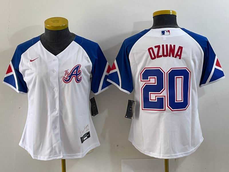 Women Nike Atlanta Braves #20 Marcell Ozuna white majestic baseball MLB Jerseys -BD
