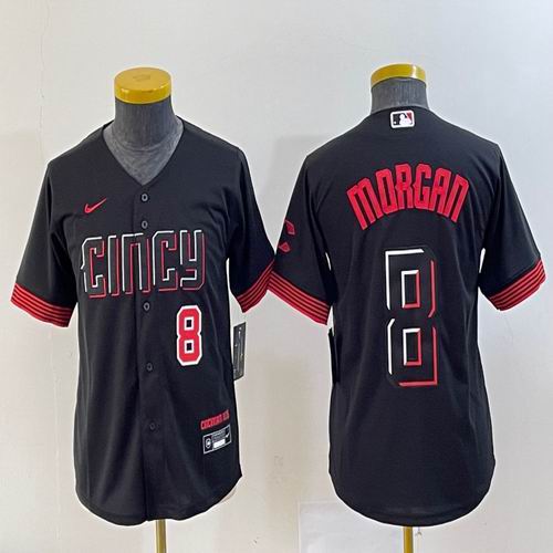 Women Nike Cincinnati Reds #8 Joe Morgan black Flexbase Authentic Collection Jersey city version -BD