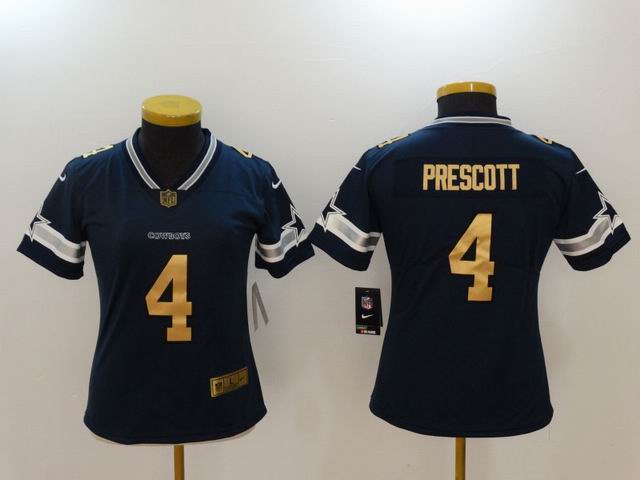 Women Nike Dallas Cowboys #4 Dak Prescott dark blue gold Color Rush Limited Jersey