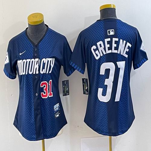 Women Nike Detroit Tigers #31 Riley Greene blue Majestic baseball jerseys city version 01