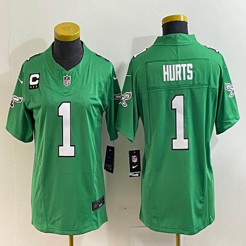 Women Nike Eagles #1 Jalen Hurts green throwback Color Rush Limited Jersey C patch-BD