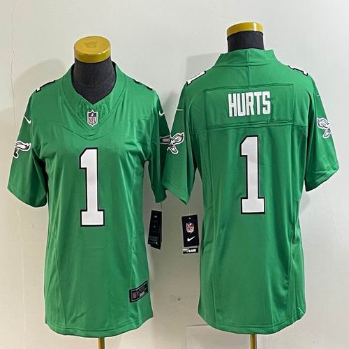 Women Nike Eagles #1 Jalen Hurts green throwback Color Rush Limited Jersey-BD