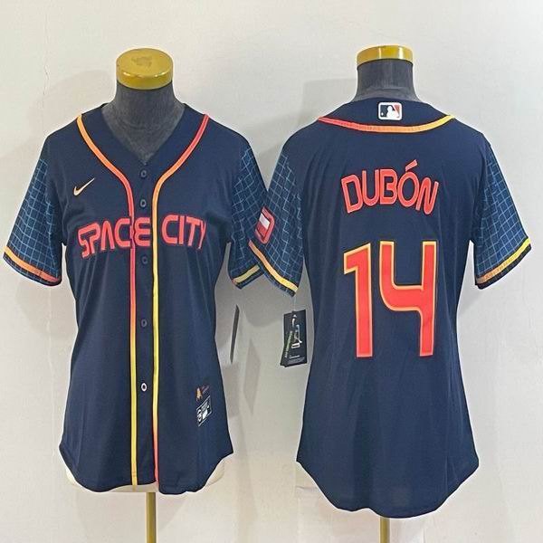 Women Nike Houston Astros #14 Dubon blue baseball jerseys -BD