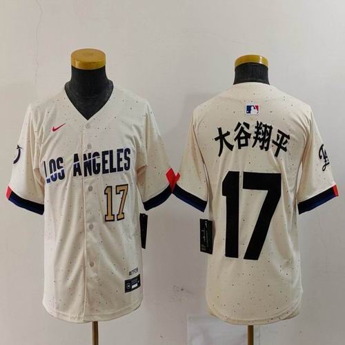 Women Nike Los Angeles Dodgers #17 Shohei Ohtani beige fashion MLB baseball Jersey 004