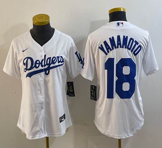 Women Nike Los Angeles Dodgers #18 Yoshinobu Yamamoto white majestic baseball jerseys 01