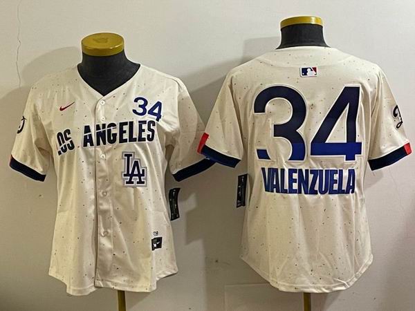 Women Nike Los Angeles Dodgers #34 Fernando Valenzuela beige majestic baseball Jerseys city version-BD 01
