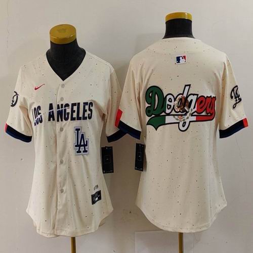 Women Nike Los Angeles Dodgers blank beige fashion MLB baseball Jersey 05