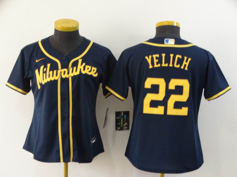 Women Nike Milwaukee Brewers #22 Christian Yelich dark blue majestic baseball jersey