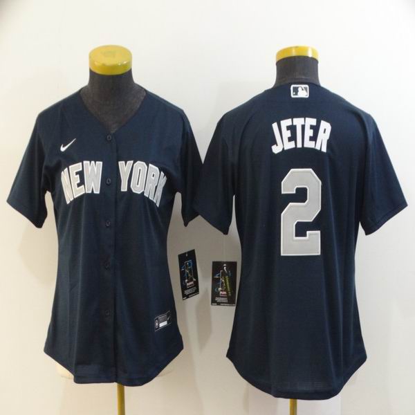 Women Nike New York Yankees 2# Derek Jeter dark blue majestic baseball Jersey-BD