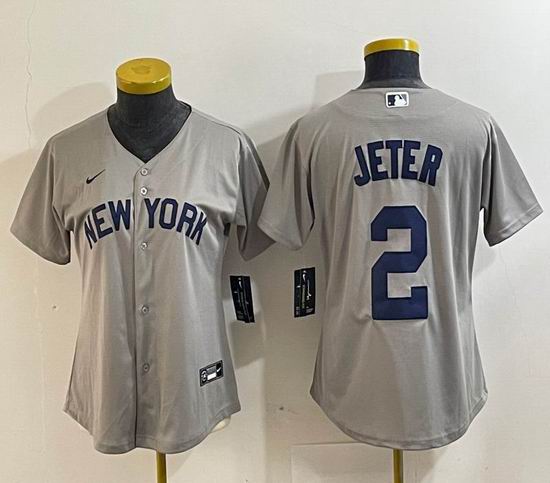 Women Nike New York Yankees #2 Derek Jeter gray majestic baseball jerseys 01