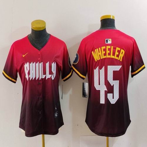 Women Nike Philadelphia Phillies #45 Zack Wheeler red majestic baseball jersey city version
