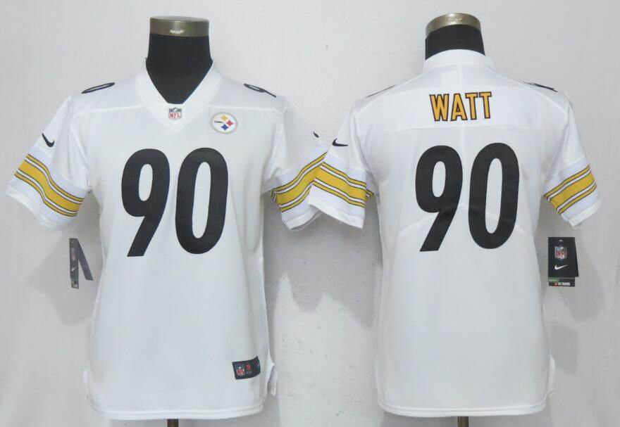 Women Nike Pittsburgh Steelers 90 T. J. Watt white Color Rush Limited Jersey