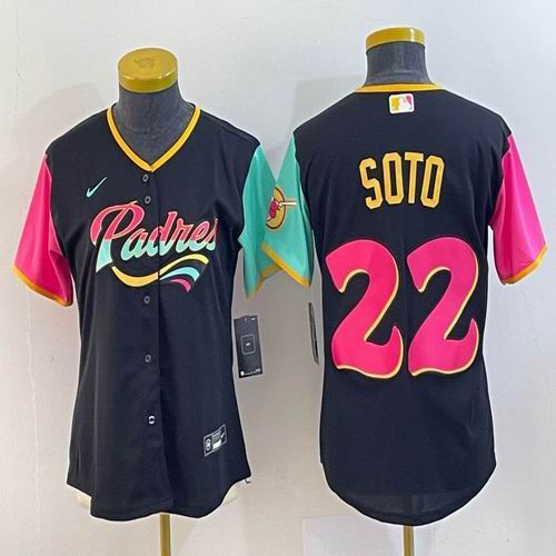 Women Nike San Diego Padres #22 Juan Soto black red green majestic baseball jerseys 01