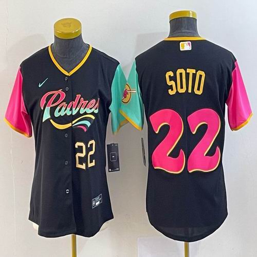 Women Nike San Diego Padres #22 Juan Soto black red green majestic baseball jerseys 02